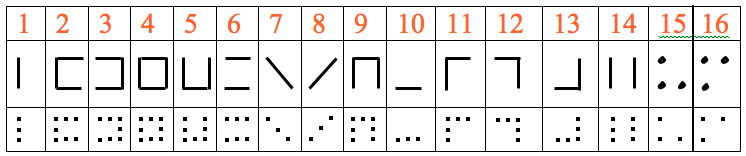 The 16th digit is for forming extra marks and symbols (not shown here) as may be required.