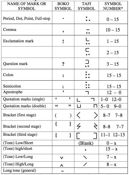 Figure 21 below shows the Tafi characters used as punctuation and other marks.