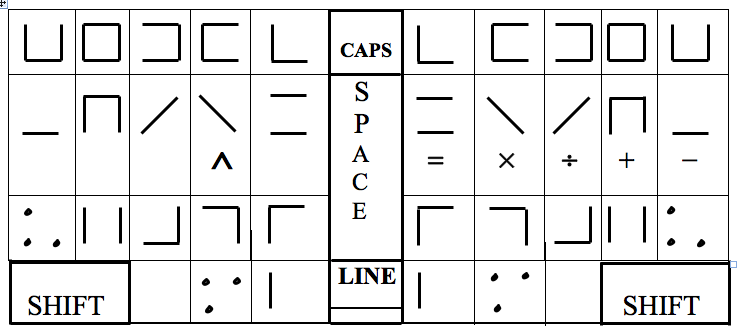 Another style of ‘Moon’ or ‘Braille’ consisting of dots and strokes or dashes, for the blind to ‘read’ by touch and the sighted to read by seeing, is shown in Figure 32 below, as the “dot-dash” braille: This is a remarkable development.