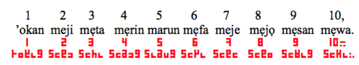 An example of Tafi Writing (red), in Yoruba, is given in Figure 17 below below with the numerals (1 – 10).