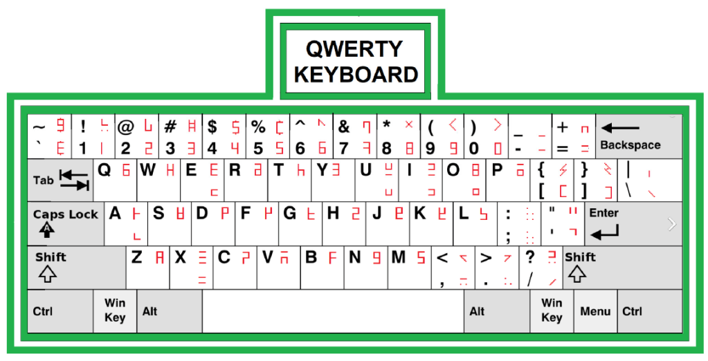 The symmetrical keyboard of proposed Tafi typewriter is shown in Figure 37 below.